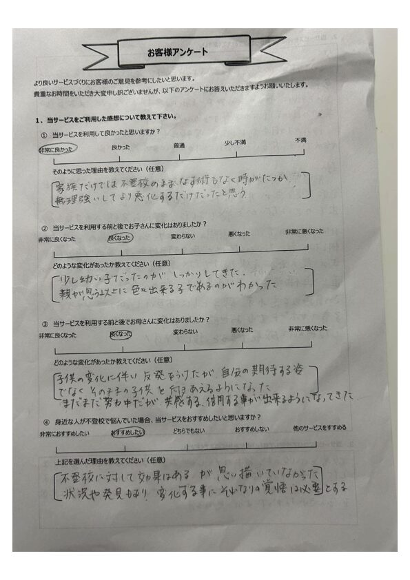 実際、登校を始めた後は「意外と楽しい」「この先生、意外とすごい」と言うようになり、少しずつ学校への見方が変わっていきました。