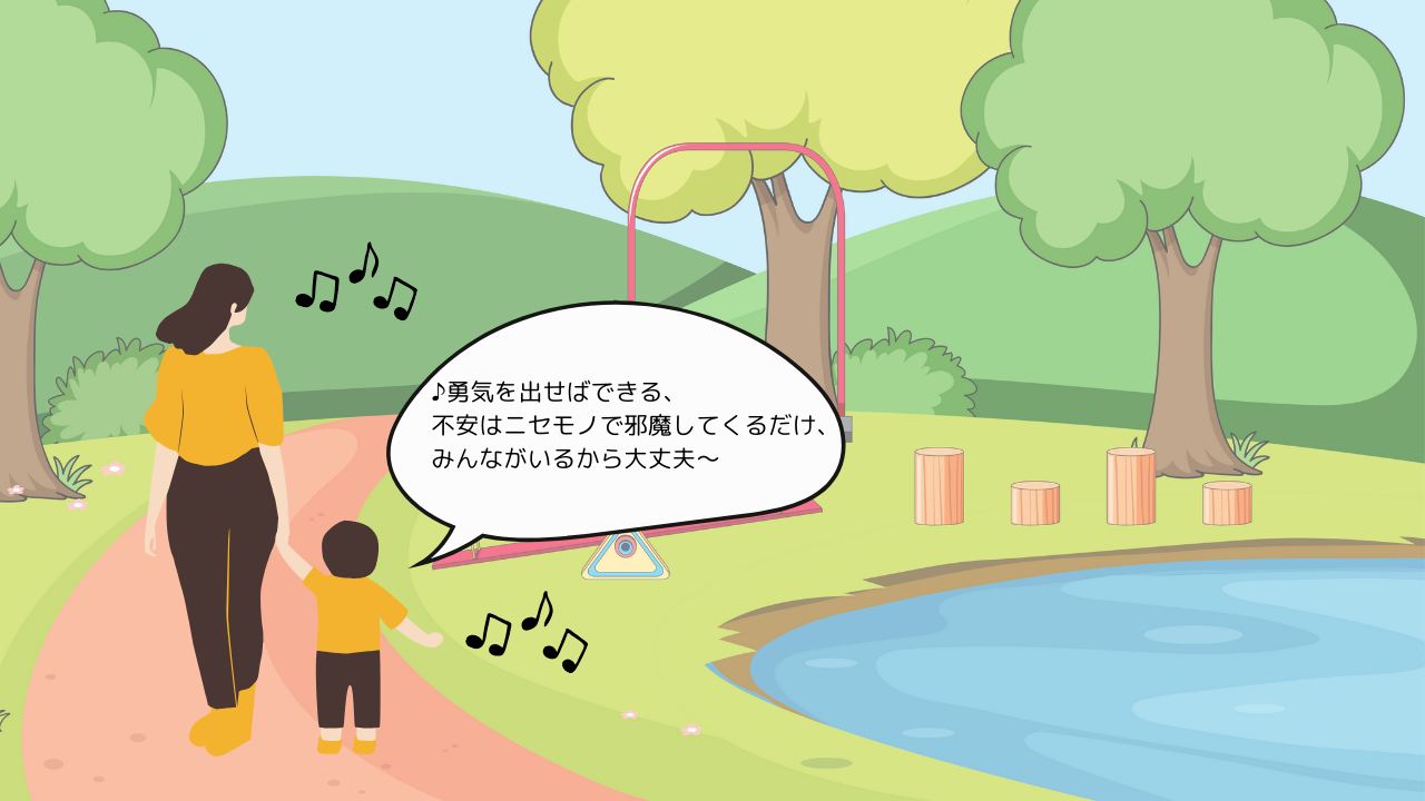 ♪勇気を出せばできる、不安はニセモノで邪魔してくるだけ、みんながいるから大丈夫♪