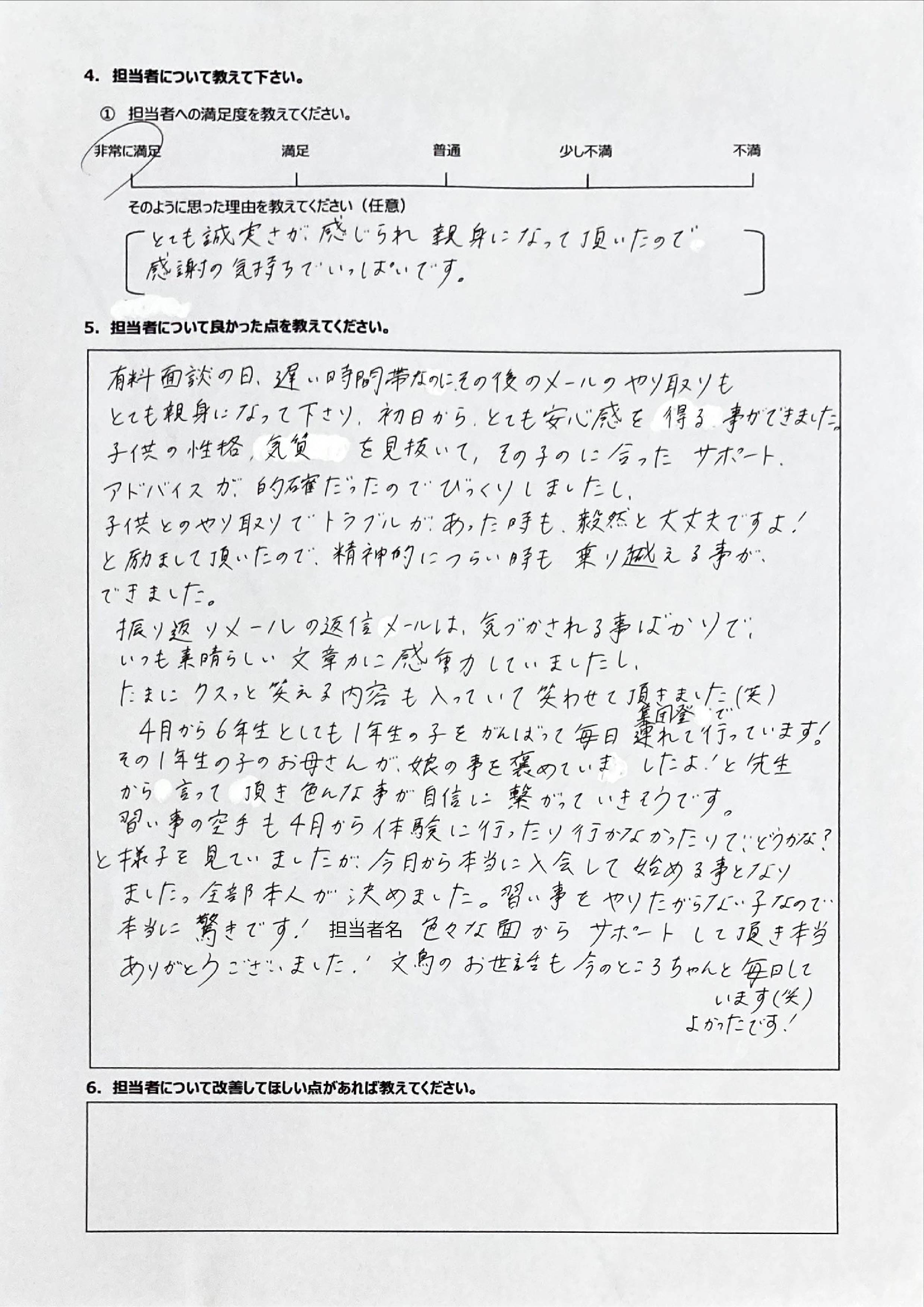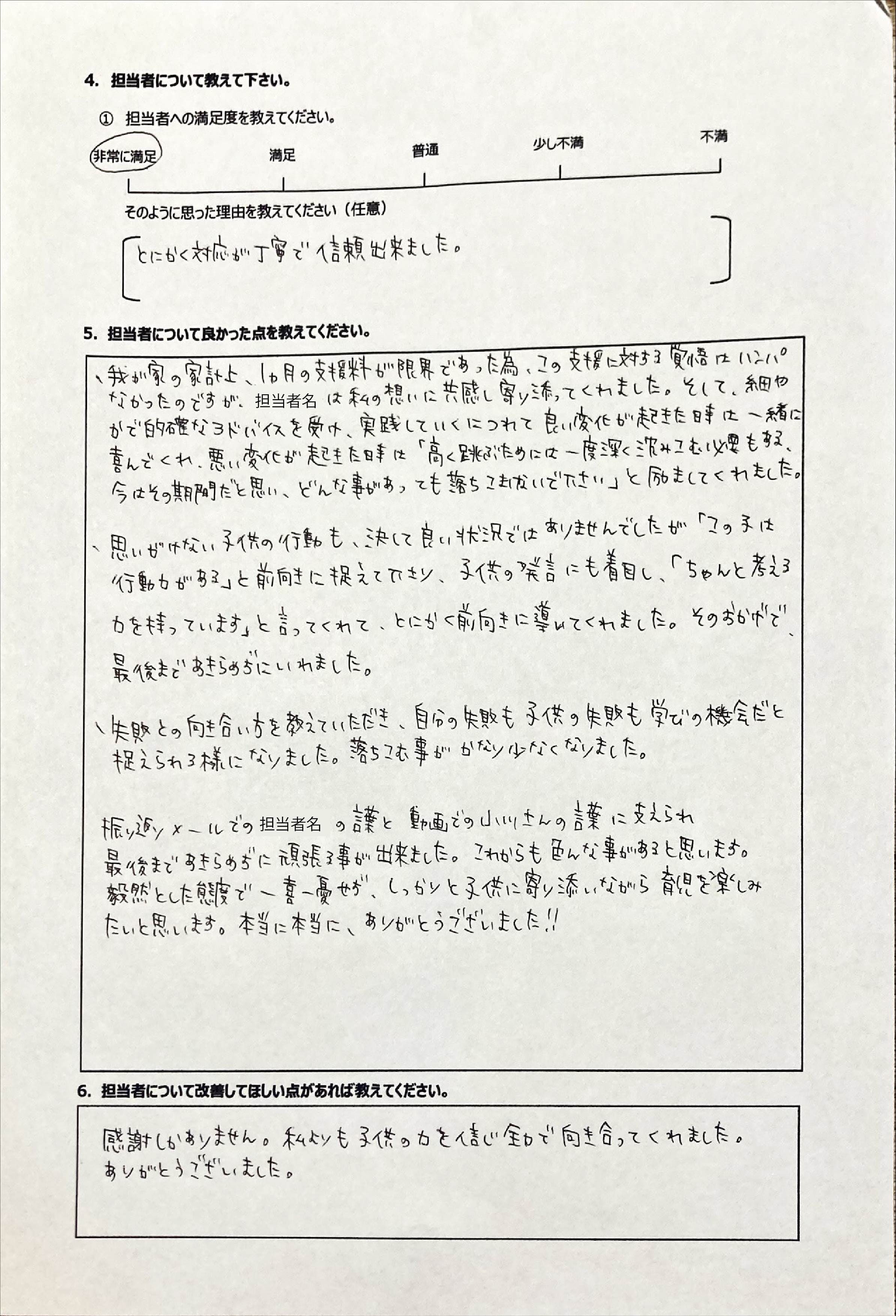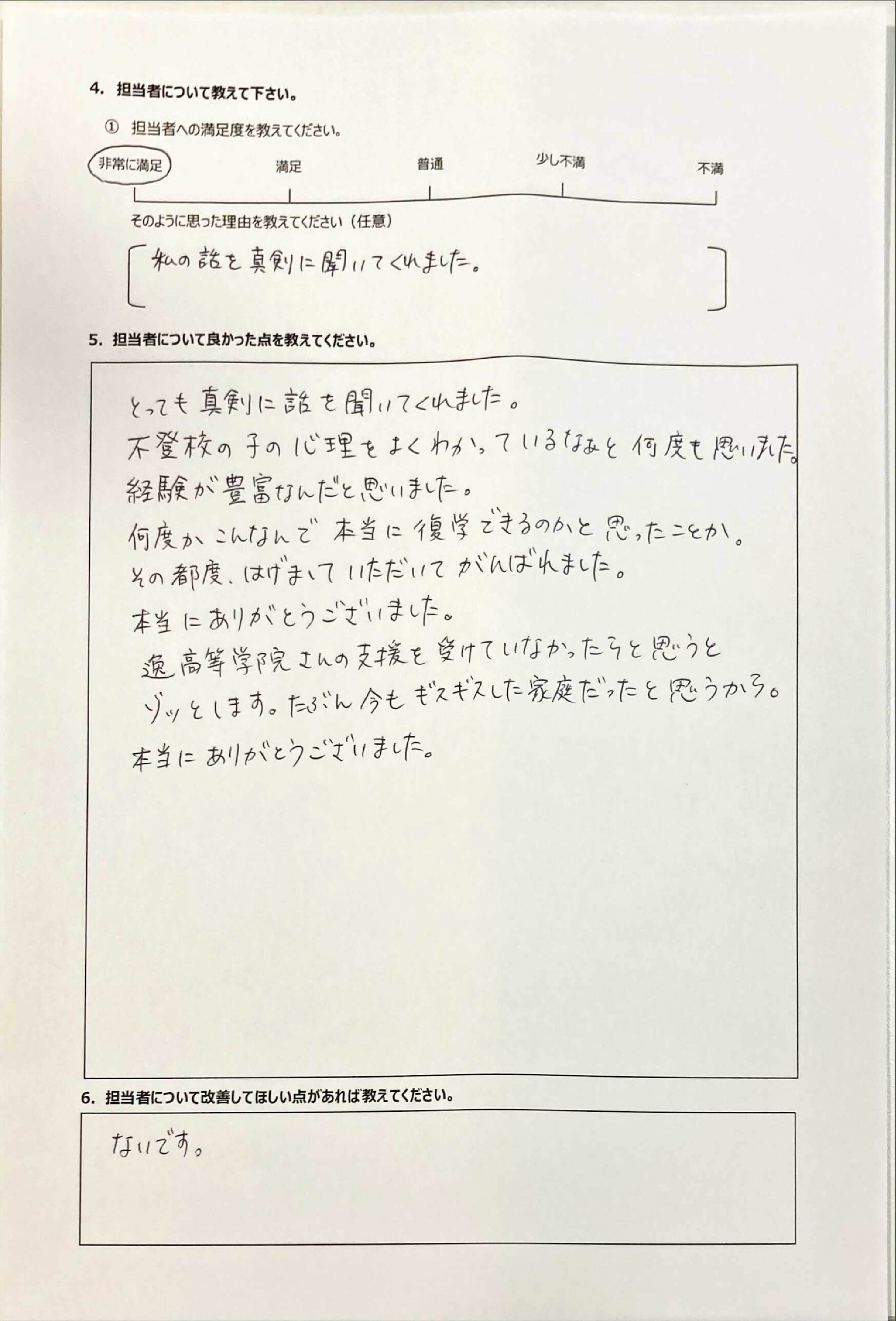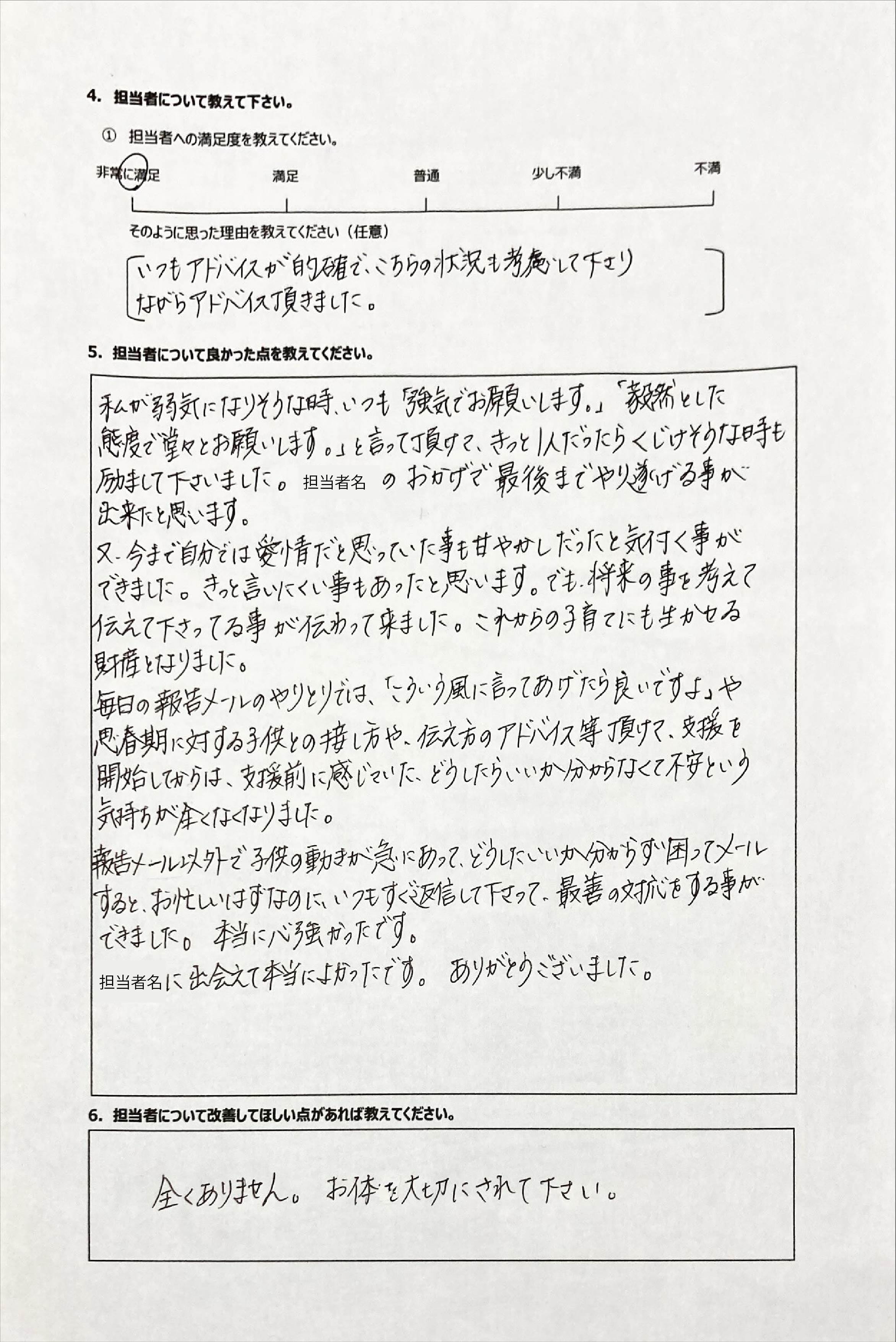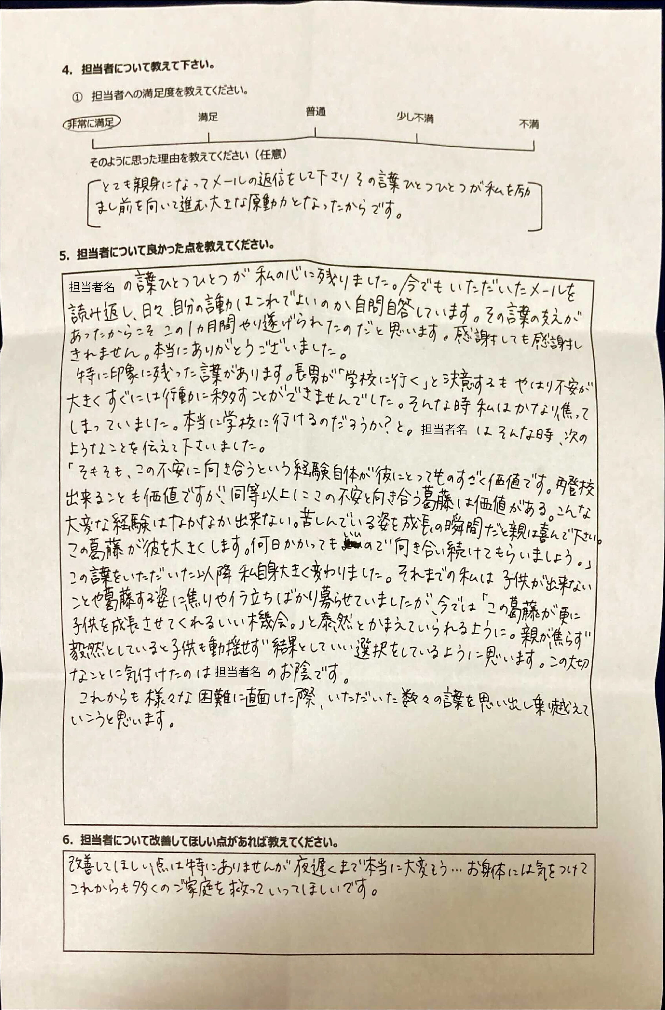 とにかく子どもが再登校できたことがすごかったです。そして、どの相談先よりも具体的なアドバイスがこんなにも出てくることが不思議で仕方なかったです。