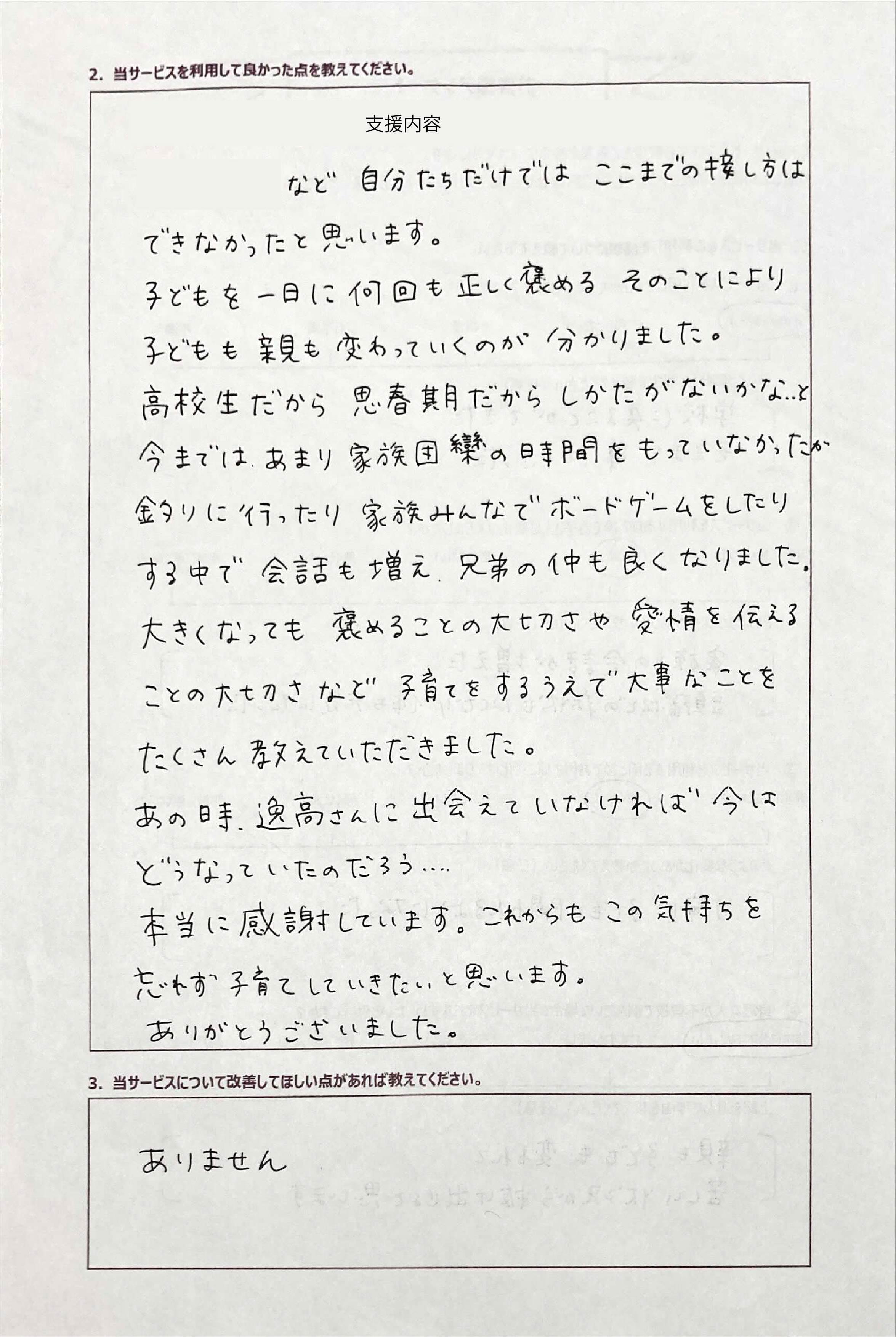 - 家族で同じ方向を向いてお子さんと接するようになった
