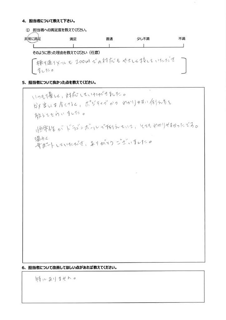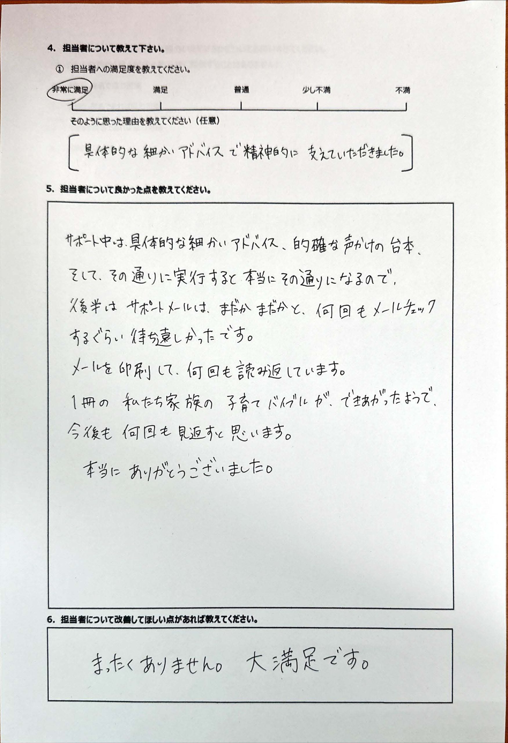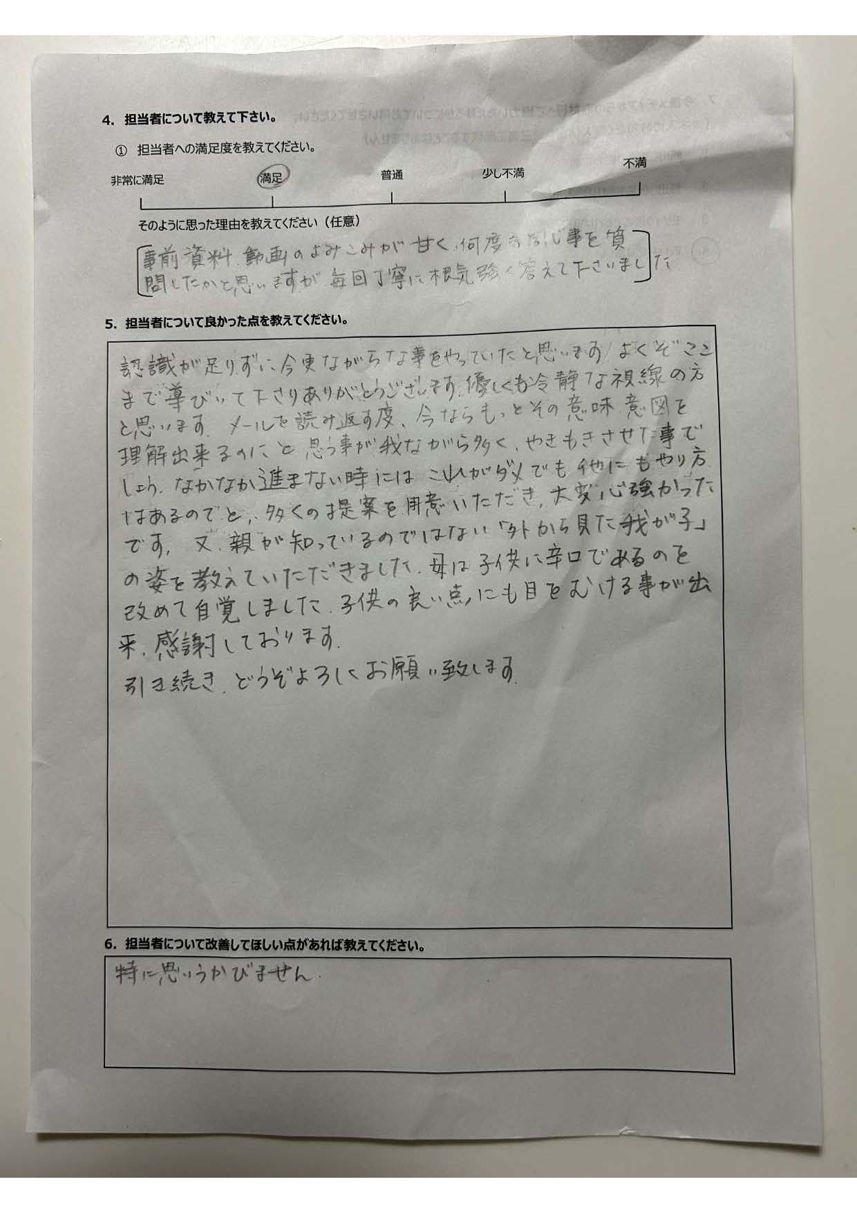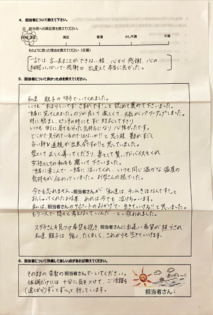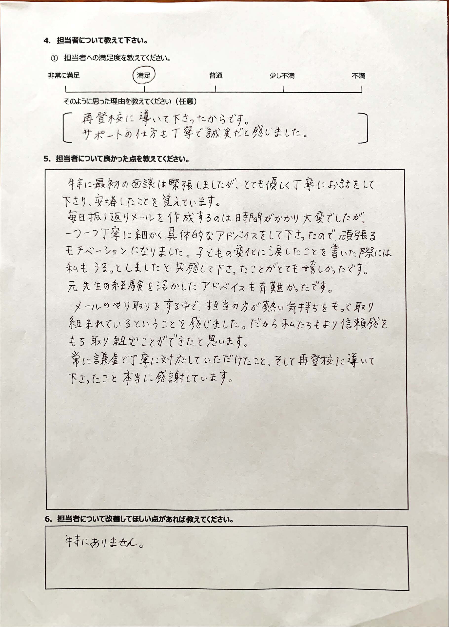 復学支援後の親御さん直筆アンケート