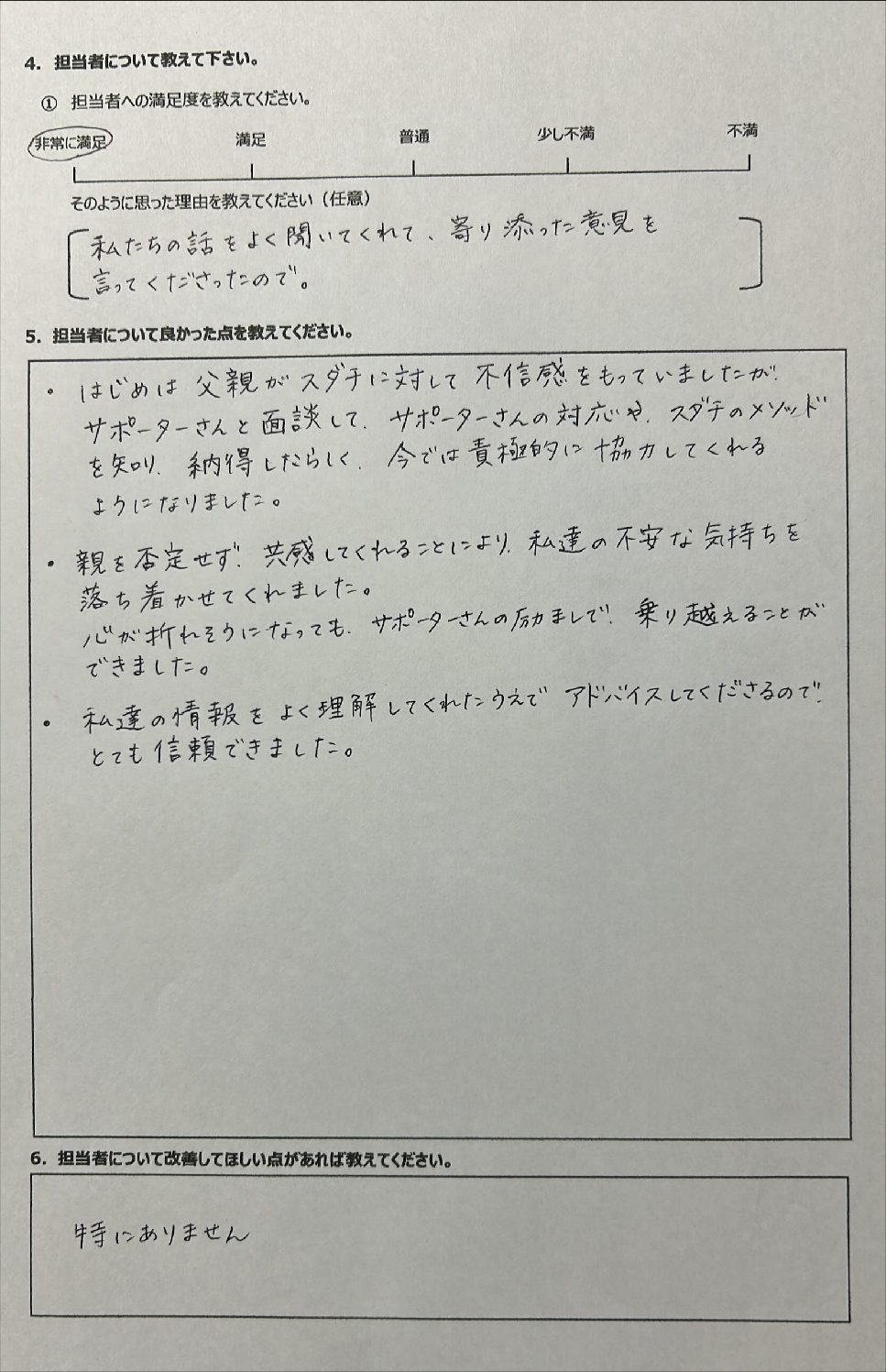 不登校原因: 勉強が分からない/HSC/人間関係のトラブル