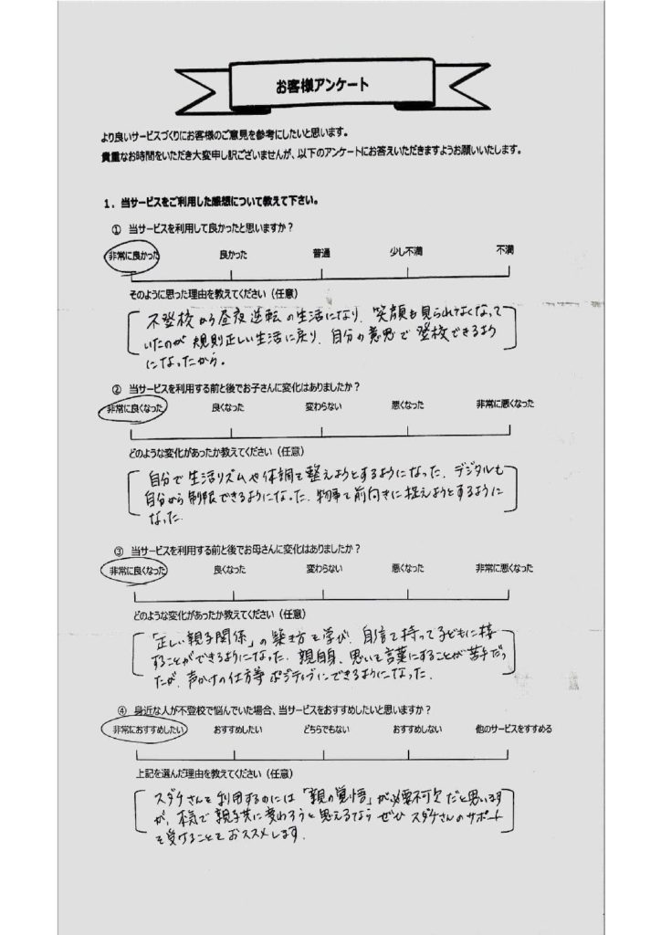 不登校背景HSC/家庭内の問題/人間関係の問題