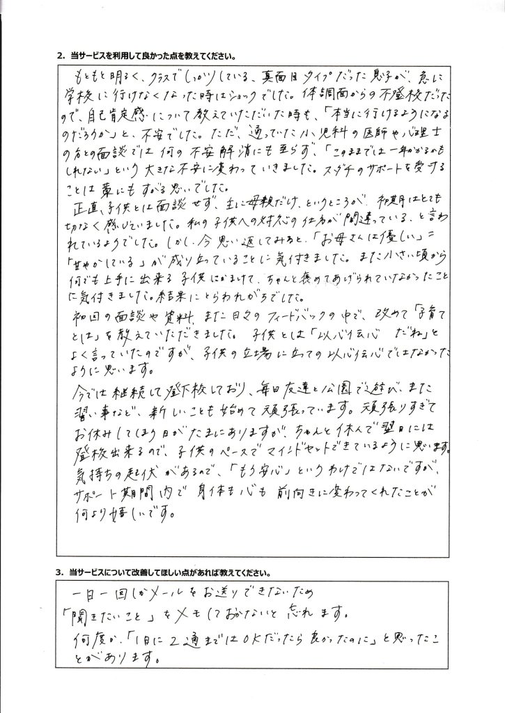 • 不登校タイプ別の専用アドバイスが届く