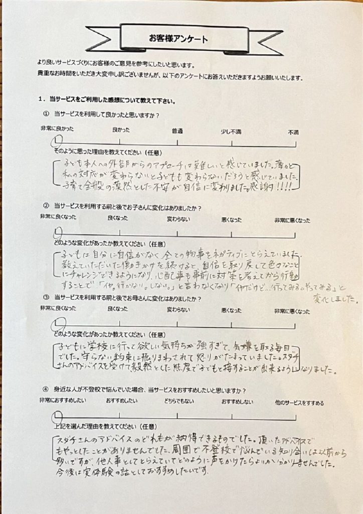 • 不登校タイプ別の専用アドバイスが届く