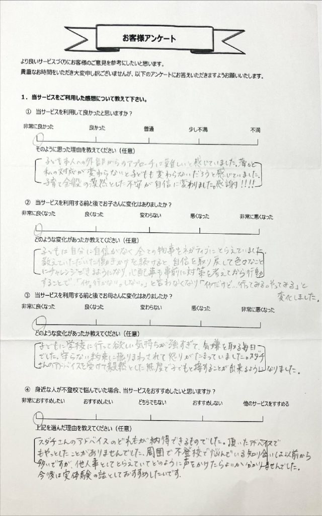 • 不登校タイプ別の専用アドバイスが届く