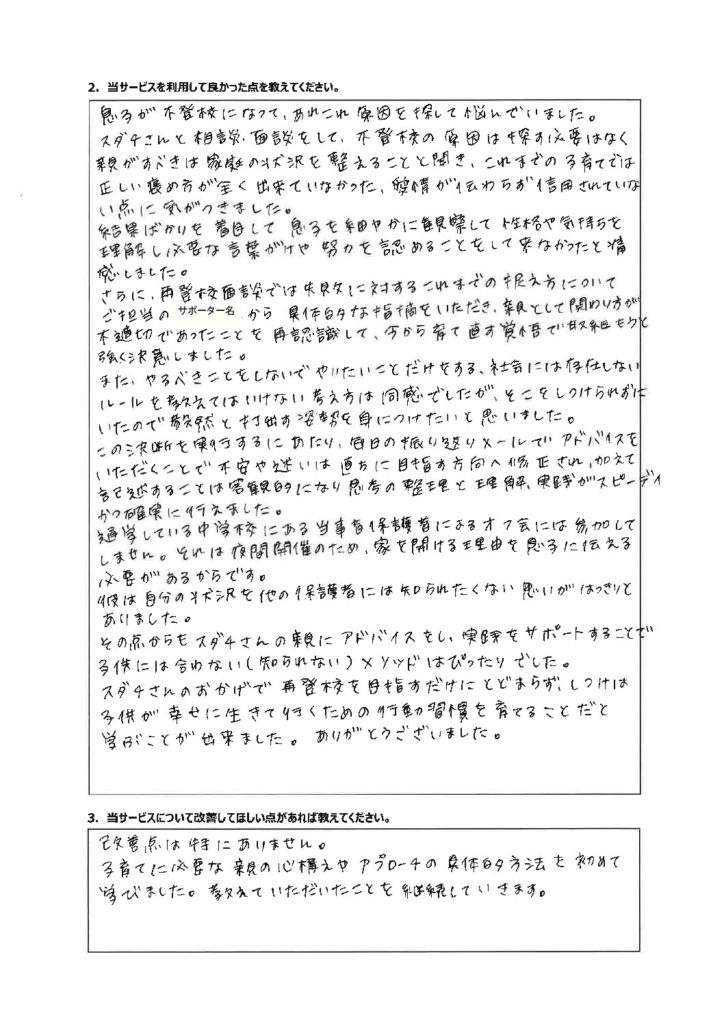 不登校背景HSC/先生とのトラブル/人間関係のトラブル
