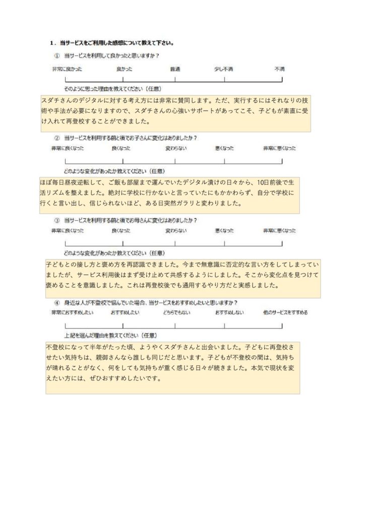 • 不登校タイプ別の専用アドバイスが届く