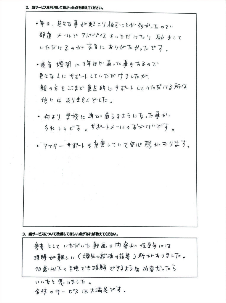 • 不登校タイプ別の専用アドバイスが届く