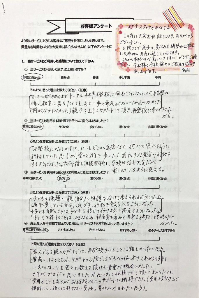 • 不登校タイプ別の専用アドバイスが届く