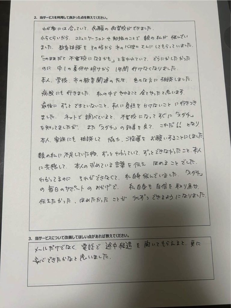 • 不登校タイプ別の専用アドバイスが届く