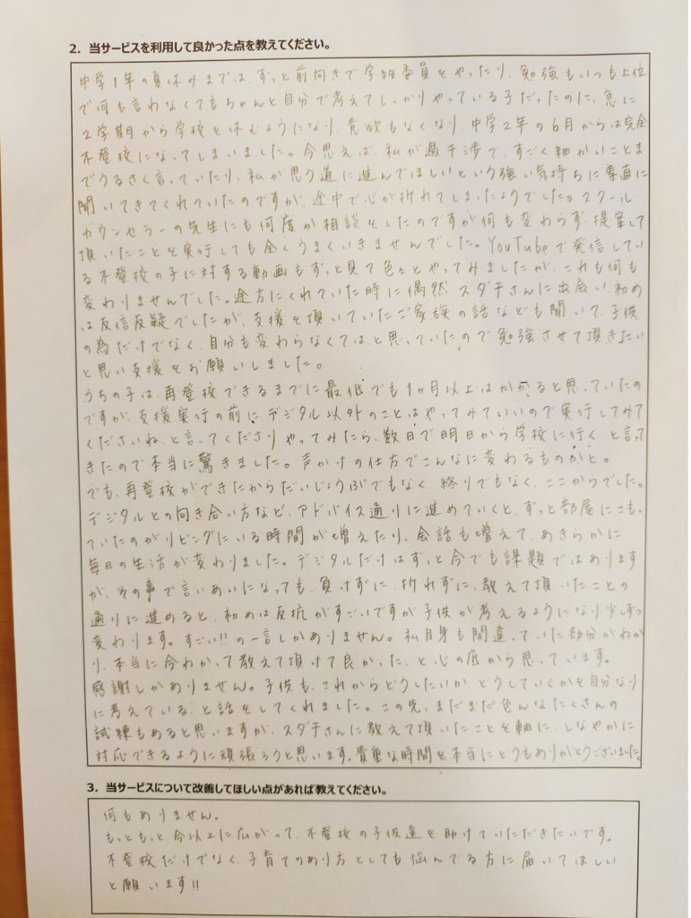 不登校背景家庭内の問題/勉強が分からない