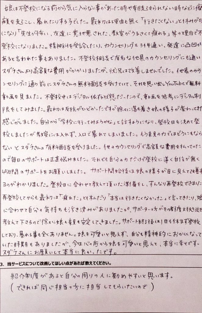 • 不登校タイプ別の専用アドバイスが届く